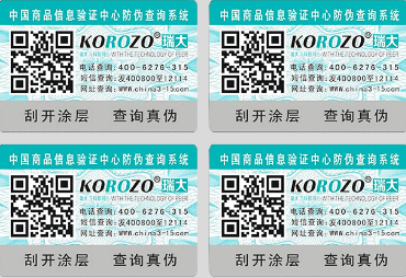 有奖体化防伪标签以先进的数码防伪系统为基础,并经过币纹、团花、双卡、荧光、温变、微缩等多种防伪技术手段处理,可以最有效地防止产品被假冒、复制和回收。数码防伪可以增强用户的购买信心,提升产品竞争力。同时企业可以通过防伪设置“刮刮奖” ,实现有奖促销。