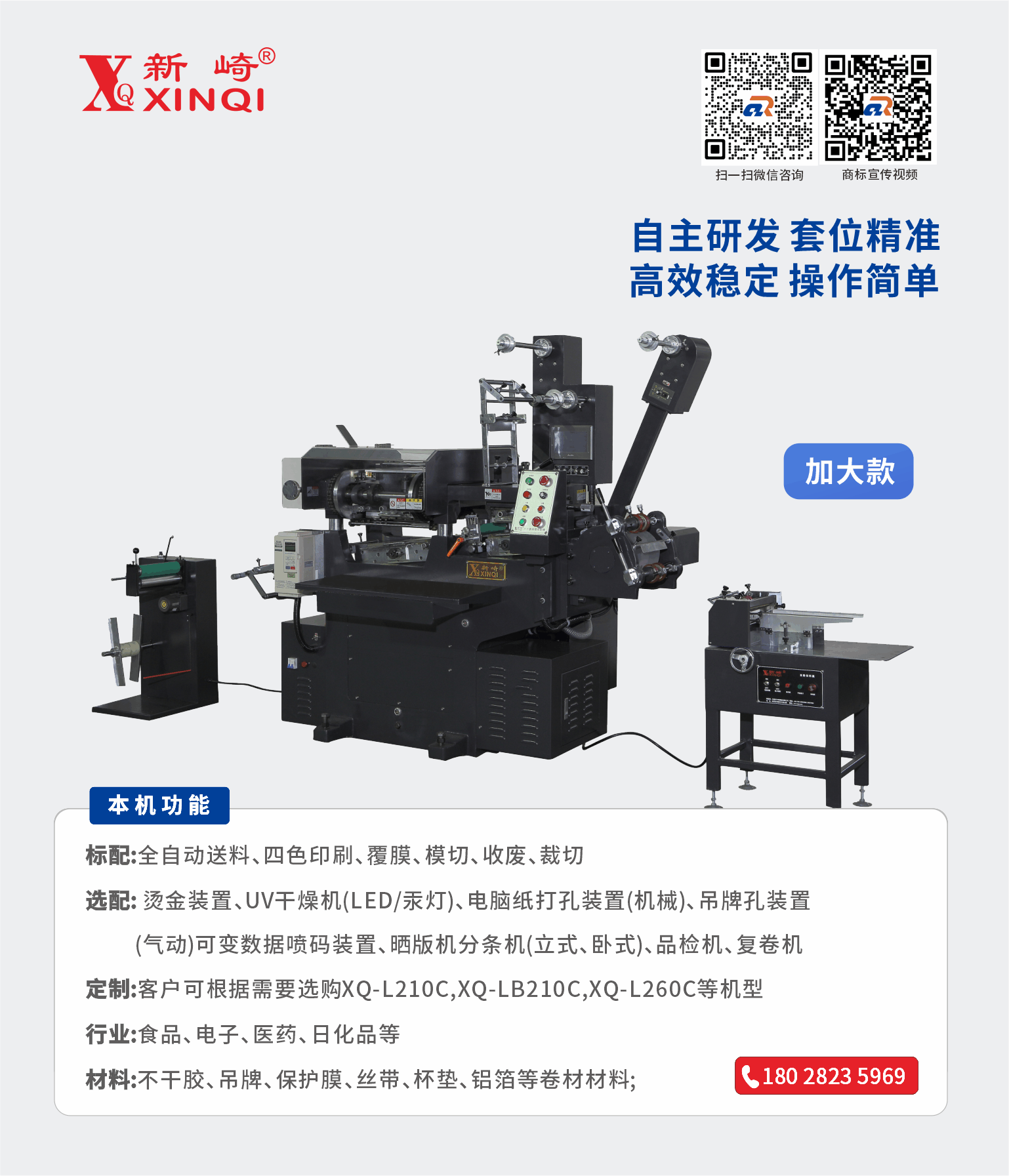 | 自动送纸、印刷、覆膜、模切、收废、裁切。 |